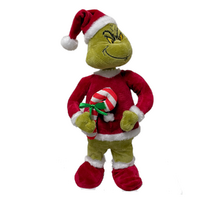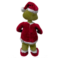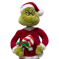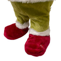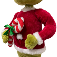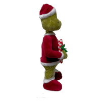 This adorable plush animated Grinch will make anyone's heart grow three sizes. Our animated Grinch holds a red and white striped candy cane with green ribbon. When activated via push button on foot, our Grinch will dance and shuffle in place whilst singing “You’re a Mean One Mr Grinch”. Made from quality plush fabric, our Merrymaker is soft and cuddly to touch. Colours are Green, Red, White with signature Yellow eyes. Requires 3 x AA Batteries, included.