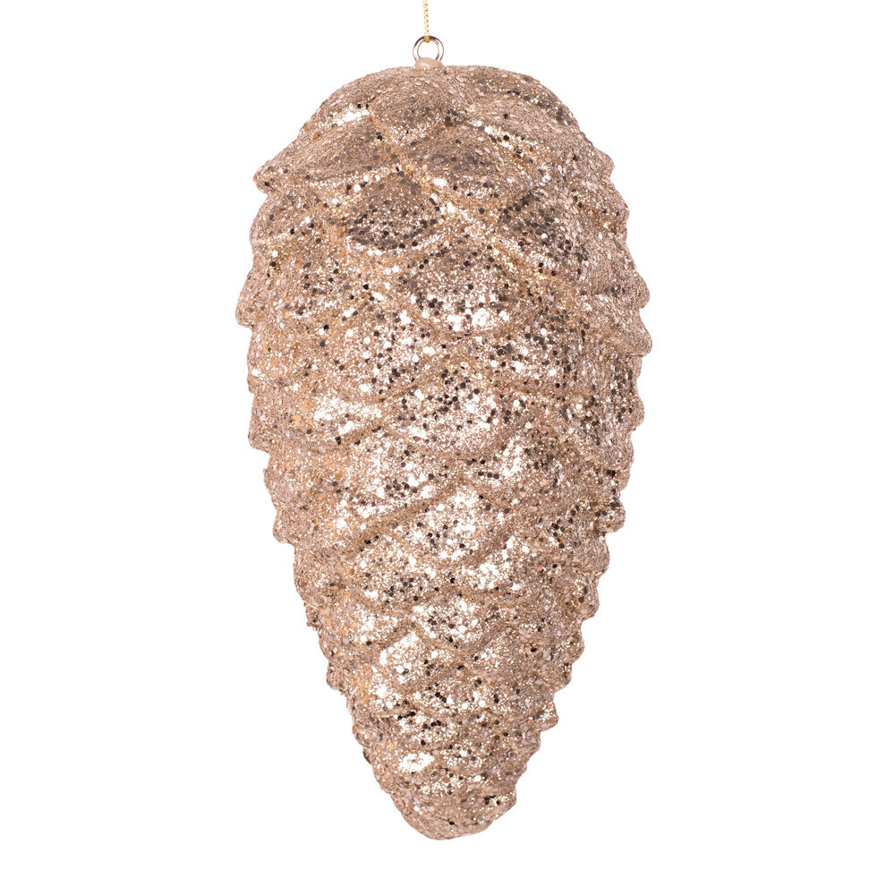 This Champagne Glitter Pinecone Hanging hanging ornament is on trend this season. Use as a decoration throughout your Christmas display and tree.