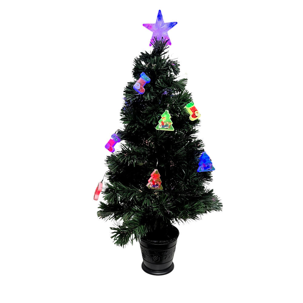 Make your Christmas beautiful with our fun selection of Optic Fibre Christmas Trees to spruce up the festive season. Our Fibre Optic Multicolour Tree 90cm provides a great backdrop for your festive decorating, really making your colours stand out. This tree features 80 tips with beautiful multicoloured LEDs. This tree is perfect for the holiday season especially with its plastic pot perfect for the jolly season. This is a great tree for seasonal decorating including Halloween and Easter.