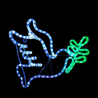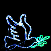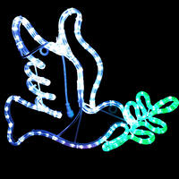 Decorate your home this year with the beautiful Dove Motif Silhouette this Christmas. With elegant lines, this lovely design is streamlined and fully reversible, enabling you to have 2 Doves facing together like love birds. This lovely Dove silhouette is a modern design in Cool White holding a Green branch. Size is 45cm wide x 53cm tall. Colours are Cool White and Green. This motif silhouette comes fully assembled ready to hang either indoors or outdoors. Made from Rope Light with 36 LEDs per metre on a steel frame construction that has been powder coated for longevity.