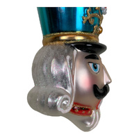 Glass Nutcracker Head Hanging Blue 13cm