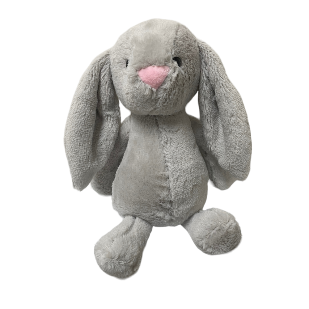 Soft and cuddly, this adorable Grey Plush Bunny will be a treasured favourite this Easter. At 25cm from top of head to feet, this bunny is the best cuddle pal with floppy ears and soft plush pink nose.