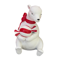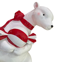 Complete your festive display with our adorable sitting polar bear! Crafted from high-quality white resin, this charming piece stands at 108cm tall and adds a playful touch to your holiday decor. Dressed in a cheerful red scarf and holding a delightful red and white candy treat, this sitting version perfectly complements its larger counterpart. Ideal for both indoor and outdoor settings, this lovable polar bear is sure to warm hearts and spread holiday joy all season long!