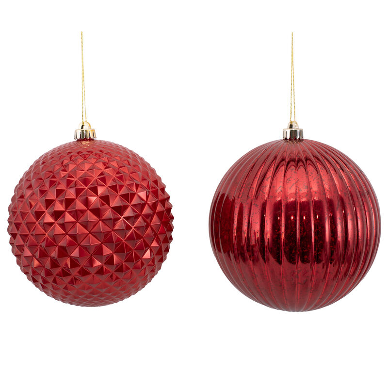 Red Ribbed & Diamond Baubles 2 Asst 20cm