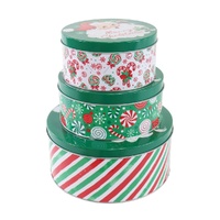 Set of 3 Cookie Tin Round Candycane 2 Asst 20cm