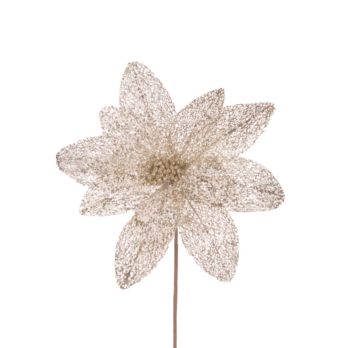 For a stunning finish you can't go past our Sheer Champagne Glittered Poinsettia 40cm, featured in a glamorous champagne. These gorgeous poinsettias will bring joy and magic to your home. Perfect for trees and all sorts of arrangements and displays.