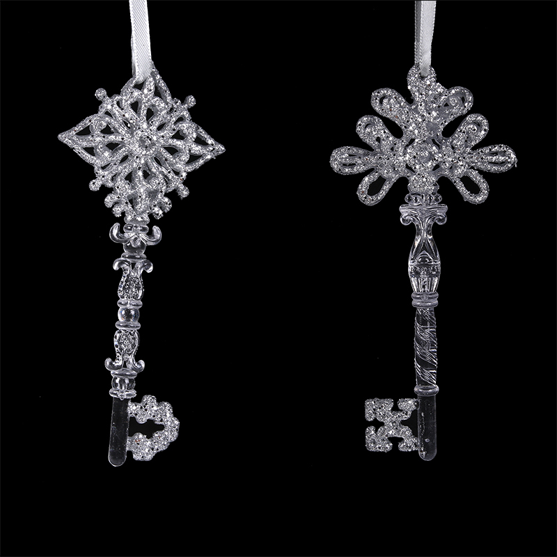 Silver Glitter Key Tree Ornament 16cm 1pc 2A
