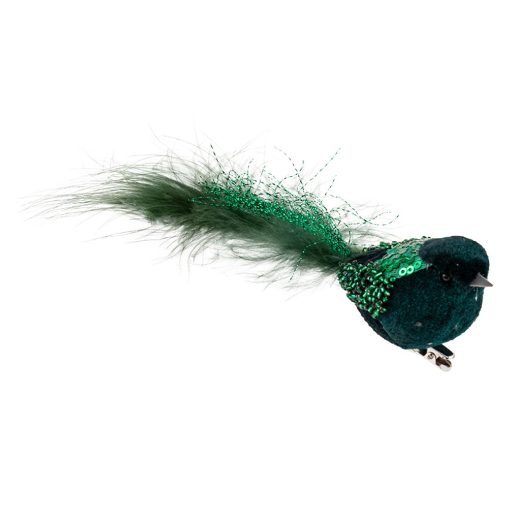 Give your holiday decor the perfect finishing touch this Christmas with this festive and beautifully crafted Velvet Emerald Bird 15cm.