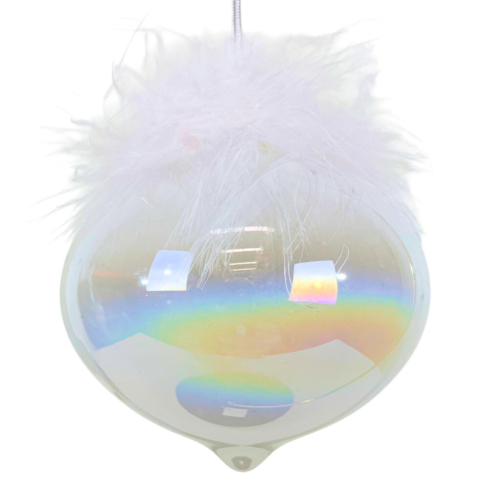White Feather Topped Onion Bauble 8cm